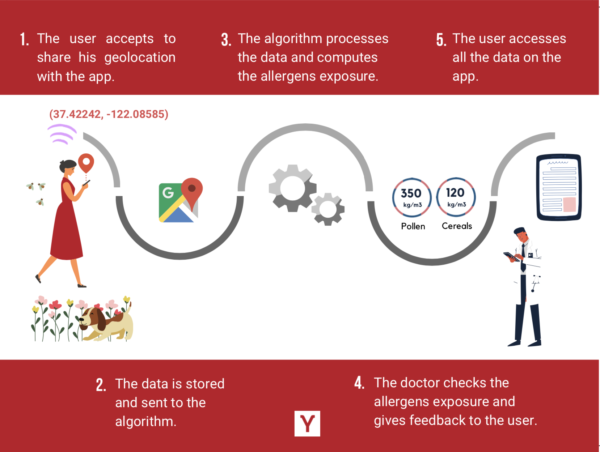 Your algorithm takes the personal geolocation data, processes it, outputs the allergen exposure and shares it with the user (patient) and doctors on the digital app at any time.